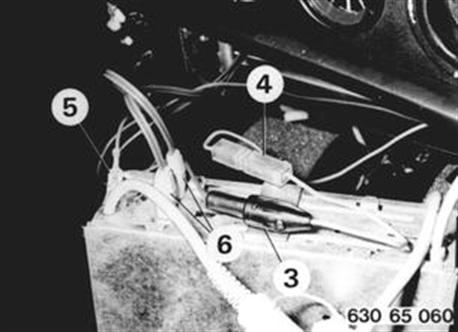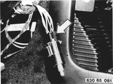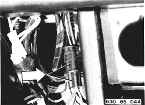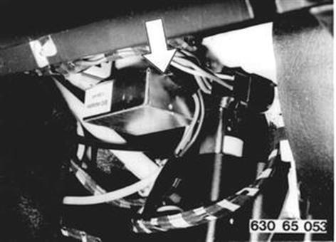 Stereo Radio/CR einbauen: Bavaria-CR: Handschuhkasten öffnen. Elektron. Störaustastung mit Stoßschalter zusammen befestigen. Kabel zum Radio-Einbauplatz verlegen. Störaustastung nach unten biegen, damit Klappern vermieden wird. |  |