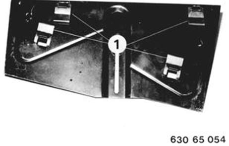 Ist ein Radioträgerblech mit kleinem Ausschnitt vorhanden, muß es gegen eines mit großem Ausschnitt ausgetauscht werden. Klammern (1) vom vorhandenen Radioträger abbauen und an neuem Radioträger montieren. |  |