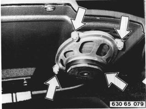 Hecklautsprecher einbauen: -bis Modell 10/78- Deckel auf Hutablage öffnen. Vorgepreßten Ausschnitt abtasten und ausschneiden. Die darunter liegende Abdeckung durchdrücken. |  |