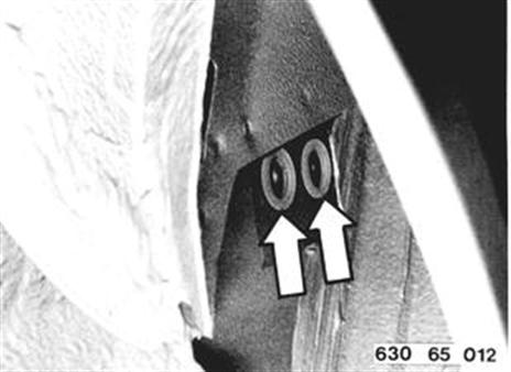 Haltewinkel im Radhaus vorne am vorhandenen Gewindebolzen befestigen. | ![]() |