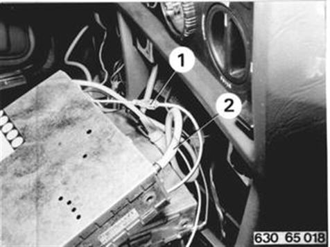 Antennen- und Steuerkabel (weiß) zum Radio- Einbauplatz verlegen. Ggf. Radio ausbauen. Kabel (1) und Kabel (2) am Gerät aufstecken. | ![]() |
