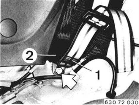 Untergurt (1) zusammen mit serienmäßigem Sicherheitsgurt (2) befestigen.