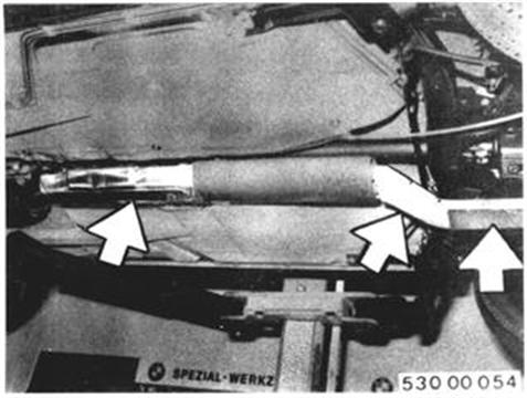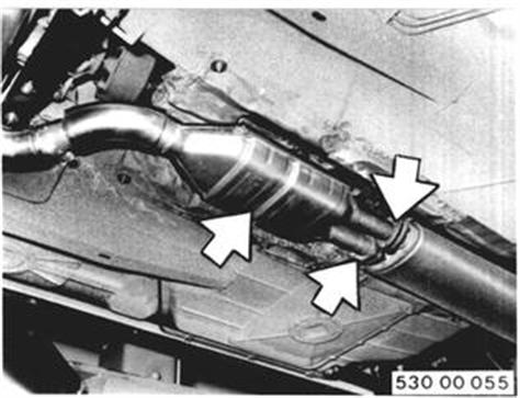 From 1980 Models: Checking Exhaust System Check exhaust system for good condition, correct routing and leaks. Remove heat shields to check joints and gaskets for leaks. Check catalytic converter for external distortion, cracks or rattling. Important: If car had been operated on leaded gasoline, replace catalytic converter and oxygen sensor. | ![]() |