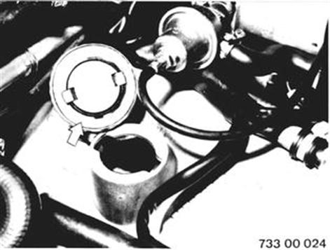Checking Fuel Evaporation System Check tightness of hose lines and connections on fuel evaporation system. Check filter plate on carbon filter for plugging, replacing carbon filter if necessary. | ![]() |