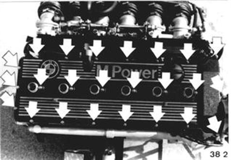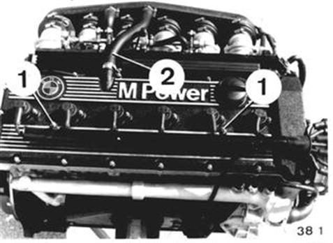 Vehicles after change point in 1982 REMOVING CYLINDER HEAD COVER Unscrew ignition lead tube (1). Disconnect hose (2) and pull out spark plug connectors. | ![]() |