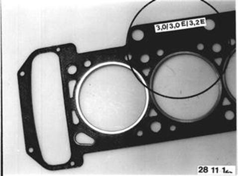 Vehicles after change point in 1982 REPLACING CYLINDER HEAD GASKET Remove cylinder head 11 12 100. Clean sealing surfaces on cylinder head and crankcase with a sealant remover** and hard wood scraper. Check levelness with a standard steel ruler, grinding cylinder head sealing surfaces if necessary - see 11 12 719. Installation: Only unse original cylinder head gaskets, of which opening for coolant match preciseley. Stamped Identification: