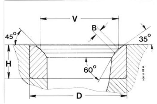 After machining the valve seat angle*, produce valve seat diameter V* and valve seat width B* by machining the correction angels*. Grind in valves with grinding paste and check for leaks - see 11 34 509. * See Specifiactions 11 34 509
