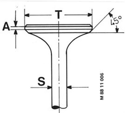 Vehicles after change point in 1982 MACHINING VALVE SEATS AND VALVES - Valves Removed - The valve must be replaced, if ground to less than the minimum edge thickness A*. * See Specifiactions