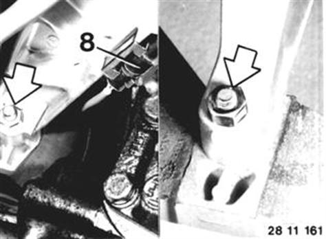 Unscrew both engine mounts. Disconnect wire (8). Installation: Tightening torque*. * See Specifications