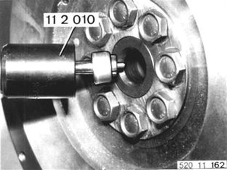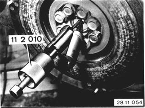 Vehicles after change point in 1982 REPLACING PILOT BEARING IN CRANKSHAFT Remove clutch disc 21 21 000. Pull out ball bearing with Special Tool 11 2 010. Cars with Automatic Transmission: Pull out adapter sleeve with Special Tool 11 2 020. 21 21 000