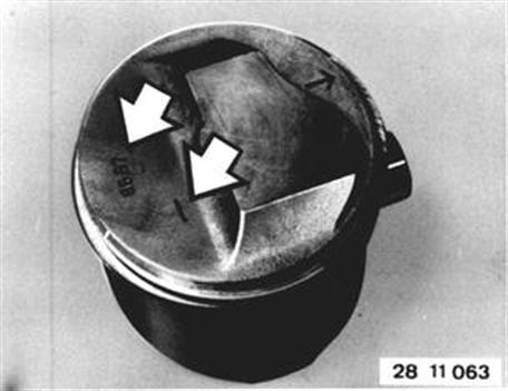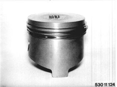 Piston Identification: ###Model BMW###Piston Dia.###Piston Crown###Code on Piston Crown ###630 CSi###89 mm, 3.504´´##flat##3.0 / 8.3 ###633 CSi###89 mm, 3.504´´##flat##3.2 / 8.4 ###633 CSi from 1980 models###89 mm, 3.504´´###recess 1.7 mm (0.067´´) deep###3.2 / 8.0 | ![]() |