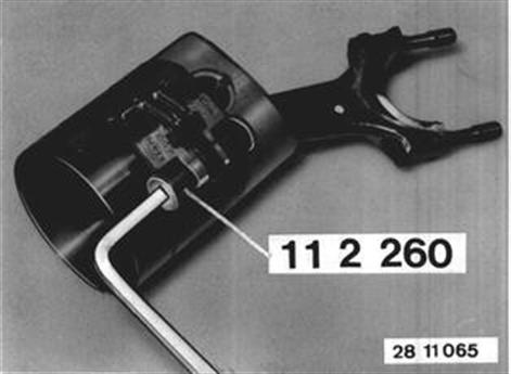 Lubricate piston and piston rings with oil. Offset piston ring end gaps by 120°. Compress piston rings with Special Tool 11 2 260. | ![]() |