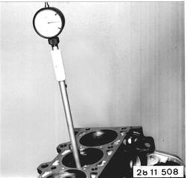 Measure cylinder bore across diameter at 3 places with internal calipers. Note installed piston clearance¹). ¹) See Specifications