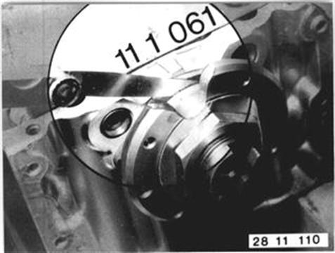 REPLACING CAMSHAFT Remove camshaft 11 31 000. Transfer sprocket flange. Guide plate (1), flange (2), lockplate (3) and nut (4). Identification of Camshafts: Up to 1980 models -272°/1 blue ring From 1980 models -260°/a green ring 11 31 000