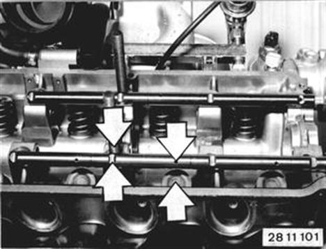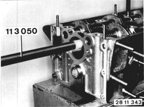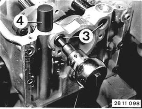 Version with Plugs: Knock out rocker arm shafts with Special Tool 11 3 050. Installation: Replace worn rocker arm shafts and rocker arms. | ![]() |