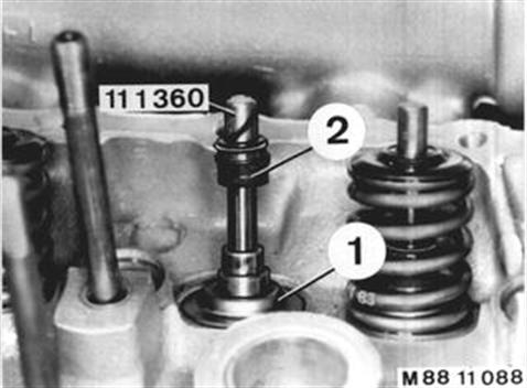 Pull off valve stem seal with Special Tool 11 1 250. Check valve guide for wear - 11 12 595. 11 12 595