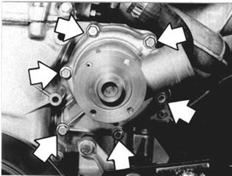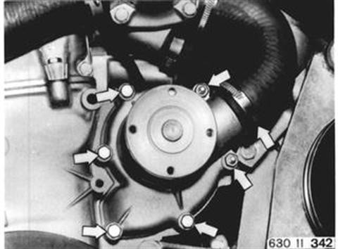 Unscrew water pump. Installation: Replace gasket. | ![]() |