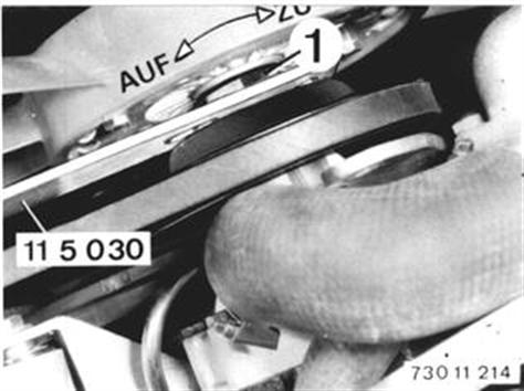 Temperature Controlled Viscous Fan Clutch: Hold pulley with Special Tool 11 5 030 and unscrew nut (1). Important: Left-hand threads - turn nut clockwise to unscrew. | ![]() |