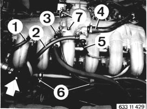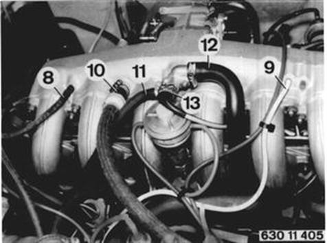 Pull off vacuum hoses (8and 9). Disconnect hoses (10 ... 12). Pull off plug (13). Remove EGR valve 11 71 501. 11 71 501