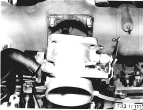 Up to 1980 Models: Pull off vacuum hoses ( 2 ... 4). Disconnect hoses (5 and 6). Disengage pull rod (7) at top and bottom. Installation: Adjust accelerator cable 35 41 421. * See Specifications