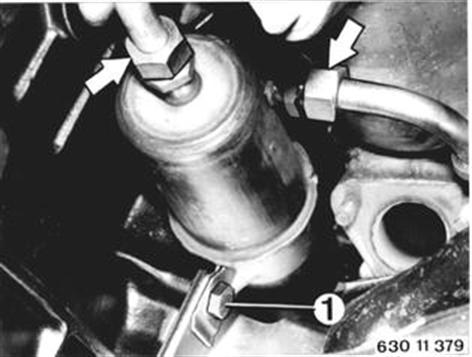 REMOVING AND INSTALLING CYCLONE EXHAUST GAS FILTER The cyclone exhaust gas filter must be replaced every 25,000 miles. Detach pipe lines. Unscrew screw (1) and remove exhaust gas filter.