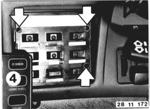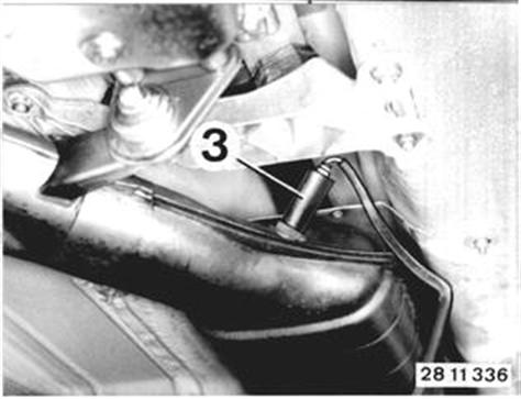 Vehicles after change point in 1982 REPLACING OXYGEN SENSOR - Do not clean oxygen sensores or let them come in contact with lubricants. - Only coat the threads with "Anti-Seize"**. - Cover oxygen sensors when undercoating the car. M 30 B 32: The oxygen sensor has to be replaced at intervals of 30,000 miles. However, the "O2 SENSOR" sign will only light up after the first 30,000 miles. Disconnect plugs (1). Lift wires out of holders. ** Source: HWB, No 81 22 9 400 088