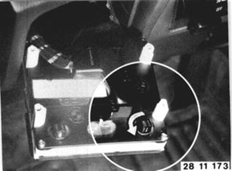 Press in reset pin (3) on interval switch. This must cause indicator lamp in instrument panel to go out. | ![]() |
