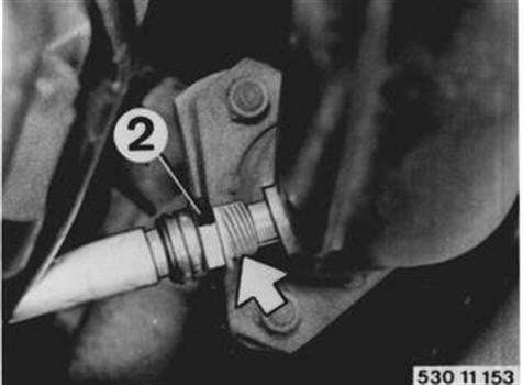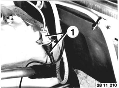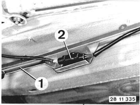 M 30 B 34: The heated oxygen sensor has to be replaced at intervals of 50,000 miles - there is no sign or indicator lamp. Unscrew plate (1) and disconnect plug (2). | ![]() |