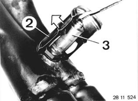 Pull off plate (2)´. Unscrew oxygen sensor (3). Installation: Coat the threads with "Anti-Seize"**. Tightening torque*. * See Specifications ** Source: HWB, No. 81 22 9 400 088