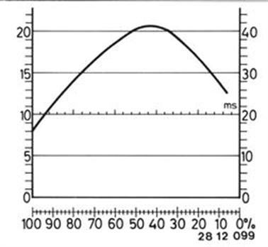 Connect oscilloscope (M 22/23) on + and - connections of speed sensor. Turn engine with the starter. Signal shown in the figure should be displayed. Only the shape is important when evaluating the signal - not the amplitude height. | ![]() |