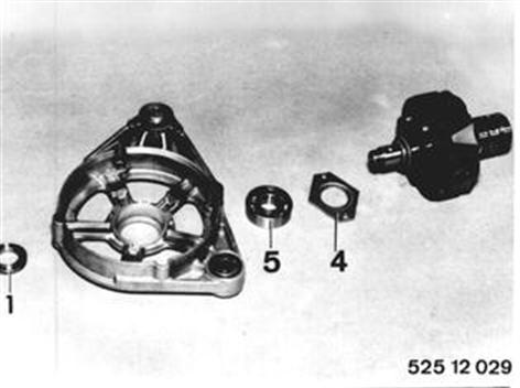 Remove tensioning bar mounting bolt. Loosen upper suspension and lift out alternator. Installation: Drive belt should give under thumb pressure applied midway between two pulleys by 5 to 10 mm (0.197 to 0.394´´). | ![]() |