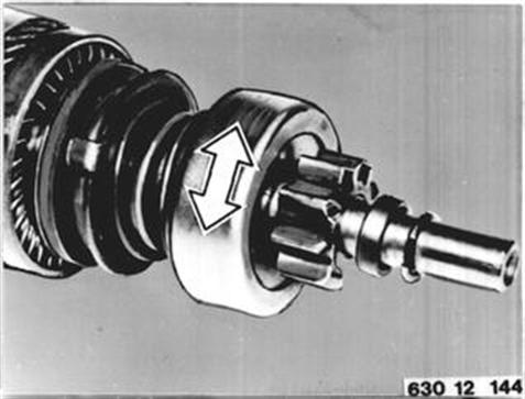 Installation: Check pinion for wear (on teeth, bearings, oneway clutch), replacing if necessary. | ![]() |