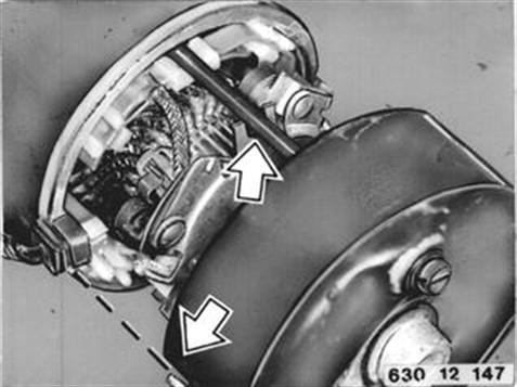 Lift springs and pull out carbon brushes. Remove holder. Installation: Check carbon brushes and commutator for wear, reparing if necessary - see 12 41 551. 12 41 551