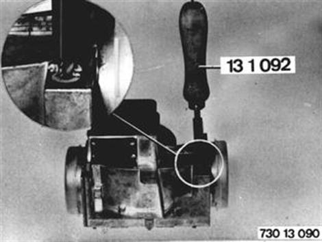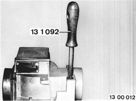 From 1981 Models: Remove air flow sensor to remove the antitamper lock. Drill off anti-tamper lock with Special Tool 13 1 092. | ![]() |