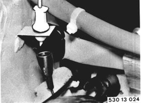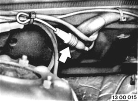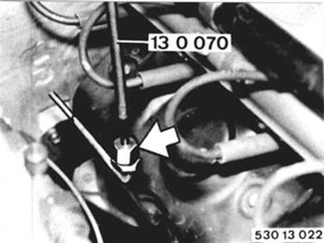 Unscrew cap nut from connection for exhaust gas probe and screw on probe 13 0 070. Connect CO tester. | ![]() |