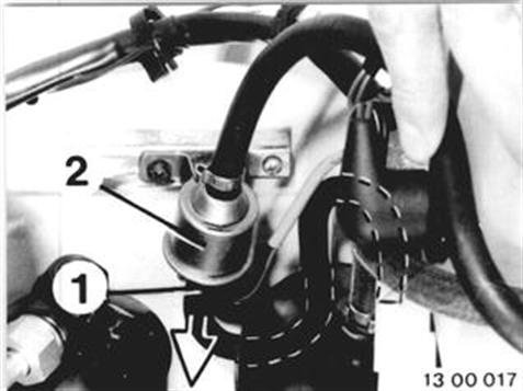 2) CO Test: Pull off hose (1) on solenoid (2). Do not insert plugs in open connections. | ![]() |