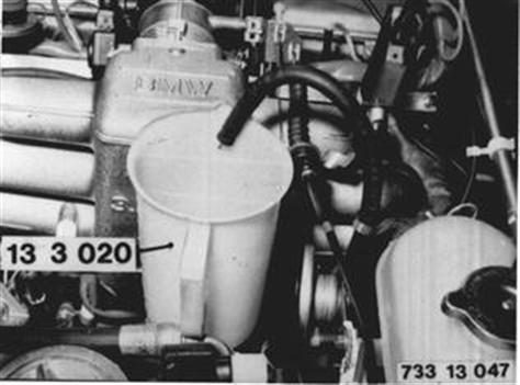 Vehicles after change point in 1982 CHECKING FUEL DELIVERY RATE Unscrew fuel return line and hold end in measuring glass 13 3 020. | ![]() |