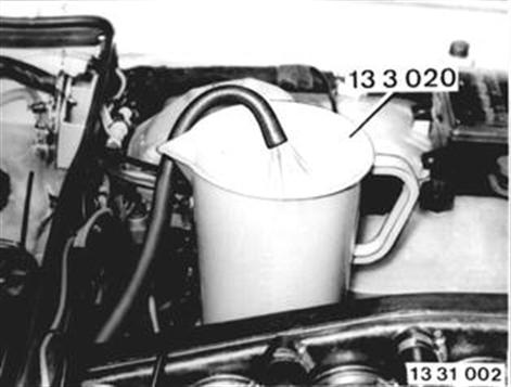 Vehicles after change point in 1982 CHECKING FUEL DELIVERY PRESSURE AND RATE Checking Fuel Pump Delivery Rate: Disconnect return hose and hold end of hose in measuring glass, Special Tool 13 3 020. | ![]() |