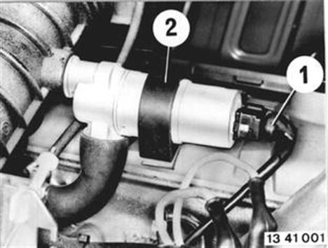 Vehicles after change point in 1982 REMOVING AND INSTALLING IDLE CONTROL VALVE (since 1985 Models) Pull off plug (1). Disconnect retaining strap (2). Pull off idle control valve on hoses and remove. | ![]() |