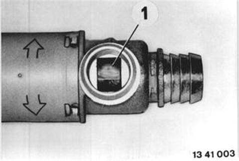 Dynamic Test: Remove idle control valve. Plug remains connected. Open rotating piston (1) completely, or close. Turn on ignition. Rotating piston must take on a position of approx. 50% the cross section opening and stay there. | ![]() |