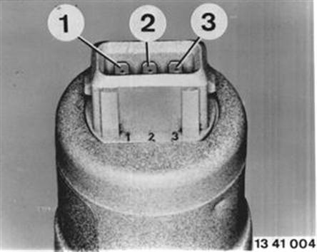 Electric Test: Measure resistance between terminals (1 and 3). Nominal value: approx. 40 ohms. Measure resistance between terminals (2 and 1) or (2 and 3). Nominal value: each approx. 20 ohms. | ![]() |