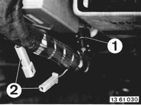 Important! M 6 cars have a black plug and a blue plug in the wire harness for the Motronic control unit. The black plug (1) must be connected, while the blue plug (2) remains open. | ![]() |