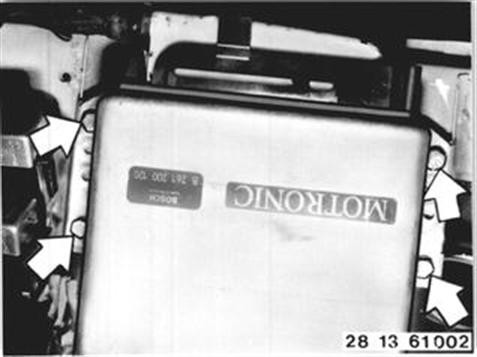 Unscrew both screws on left and right sides of the control unit. Installation: Adjust engine idle speed - see 13 00 054. 13 00 054