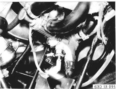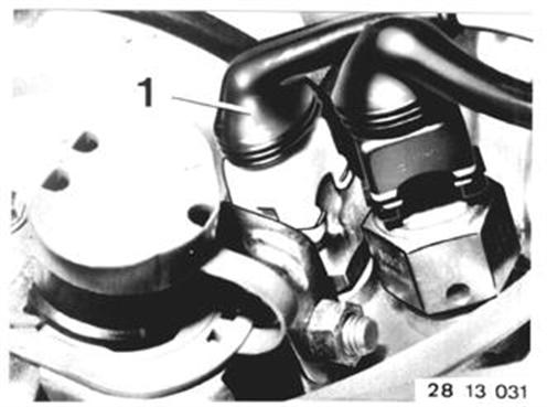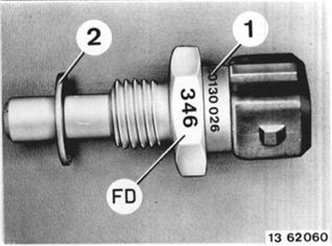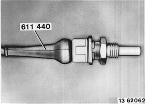 Vehicles after change point in 1982 REMOVING AND INSTALLING/CHECKING COOLANT TEMPERATURE SENSOR The temperature sensor measures engine temperature and sends this information to the control unit in the form of a resistance value. The resistance value drops as temperature rises (NTC). 1 = Plug connection 2 = Housing 3 = NTC resistor | ![]() |