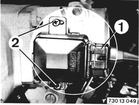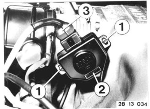 Vehicles after change point in 1982 REMOVING AND INSTALLING THROTTLE SWITCH Pull off multiple pin plug (3). Unscrew screws. Remove throttle switch (2). | ![]() |