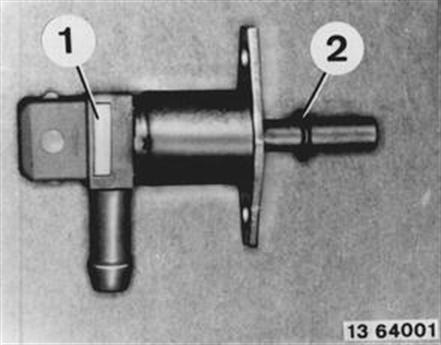 Vehicles after change point in 1982 REMOVING AND INSTALLING/CHECKING COLD START VALVE Removing and Installing: Pull off plug (1). Disconnect fuel line (2). Unscrew screws (3). Take off cold start valve. | ![]() |