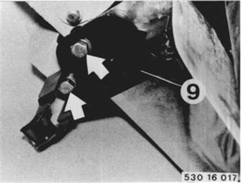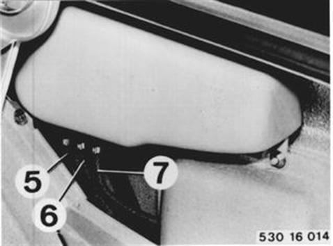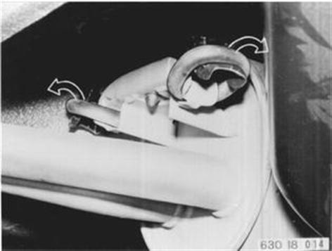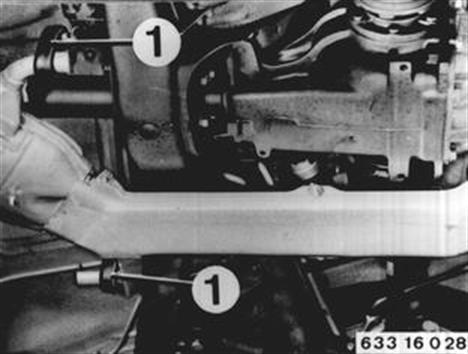 Remove trunk mat. Unscrew cover (2). Pull off plug. Loosen hose clmaps and pull off lines. | ![]() |