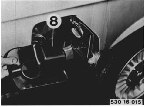 Vehicles after change point in 1982 REMOVING AND INSTALLING FUEL TANK Drain fuel tank with a scavenging pump**, or if necessary by removing the drain plug. Caution! Comply with safety regulations when draining and filling fuel tank. Tightening torque*. * See Specifications * Source: HWB