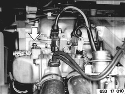 Mark on expansion tank shows the full level for cold coolant (approx. 20° C/68° F). BMW M 635 CSi: The cooling system of this model is bled automatically.