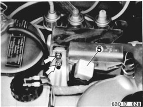 Pull relay (5) with plug out of holder and lay to one side. Unscrew nuts. Press off valve holder far enough until staybolt is clear. | ![]() |